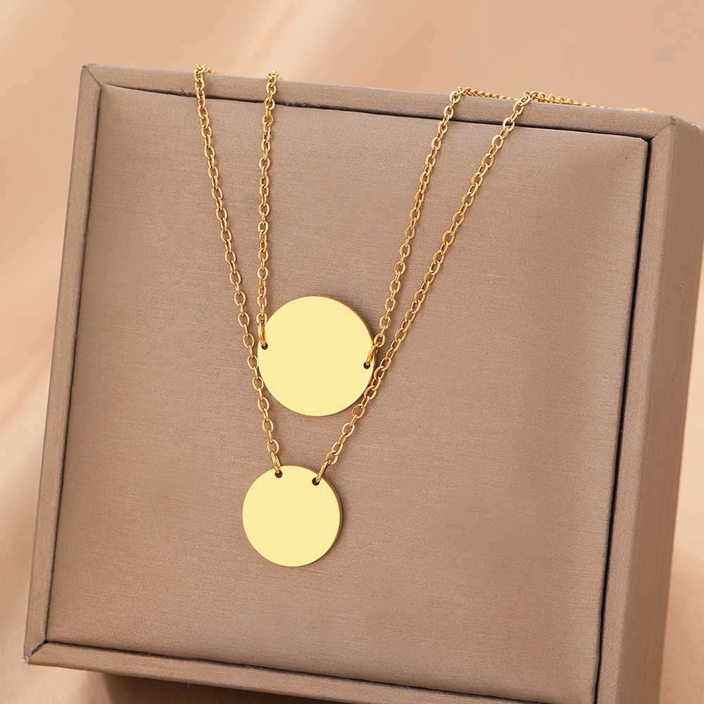 Stainless Steel Necklaces Minimalist Round Pendant Multilayer Chain Korean Necklace For Women Jewelry Banquet Gifts New Gold Color – Sumsfashion